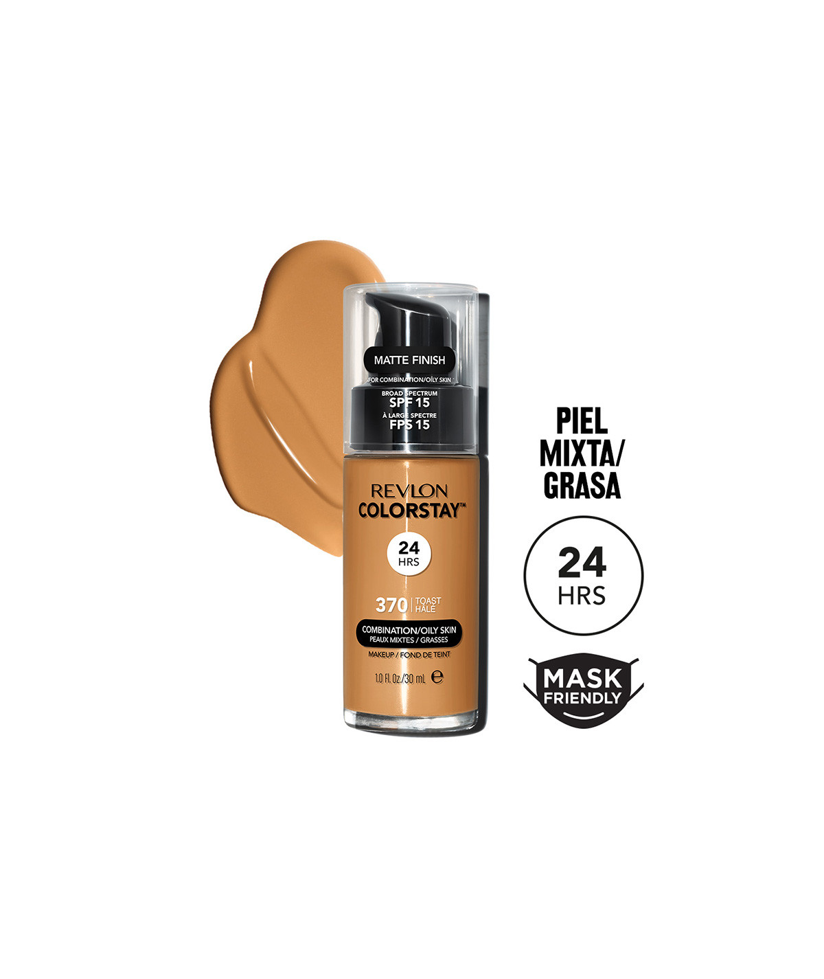 Con protección contra rayos UVA (SPF 15). Compatible con mascarilla. A prueba de transferencia. Resistente al sudor, a la humedad y al agua.
