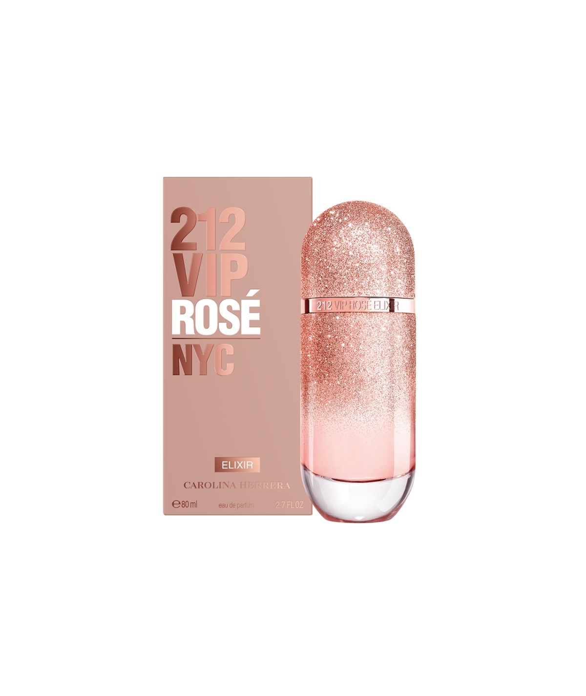 212 VIP Rosé Elixir es una interpretación sensual y más intensa de 212 VIP Rosé, presentada en un frasco de purpurina rosa dégradé.
